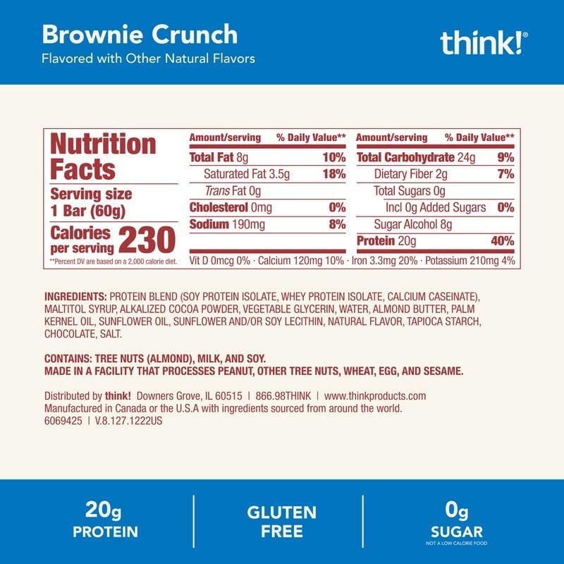think! Protein Bars, High Protein Snacks, Gluten Free, Kosher Friendly, Chunky Peanut Butter, Nutrition Bars, 2.1 Oz per Bar, 10 Count (Packaging May Vary)