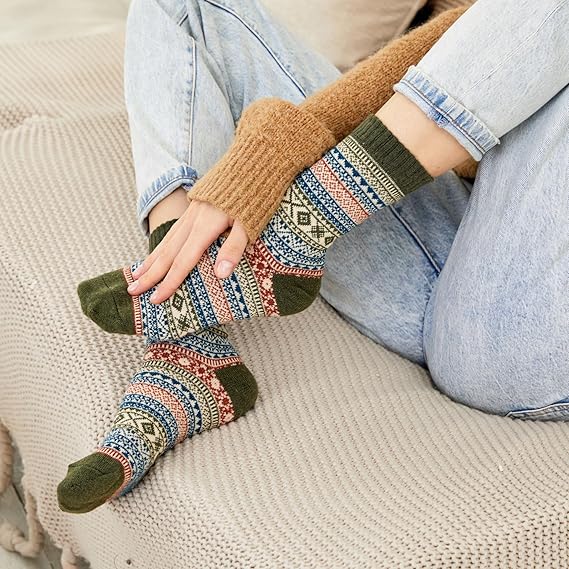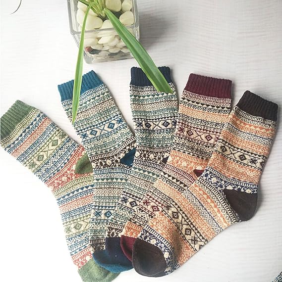 • DESIGN & COLOR : Each package including 5 pairs different wool women for socks. The casual crew socks for women feature stylish patterns and vibrant colors that will put a fun finishing touch on your outfits, it will can easily follow your daily collocation. It is a must have accessory item for cold weather